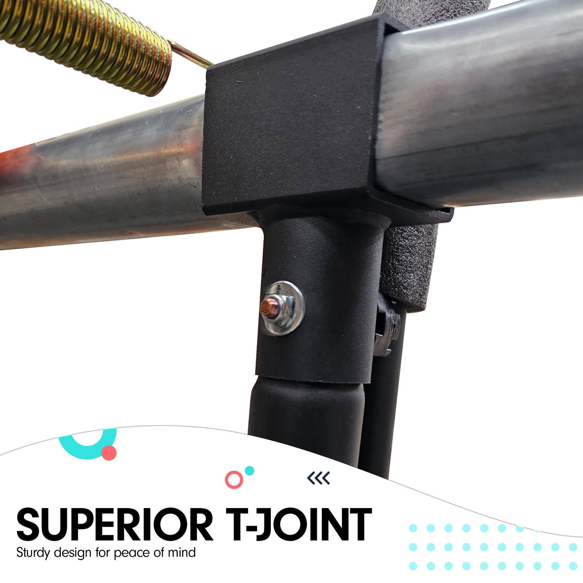 This heavy trampoline uses linked legs and grounding straps for superior stability. The structure of the legs also minimises the tendency for the legs to dig into the ground.