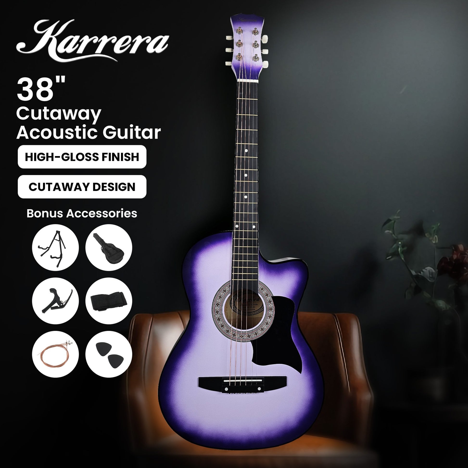 Karrera 38in Pro Cutaway Acoustic Guitar with guitar bag - Purple Burst