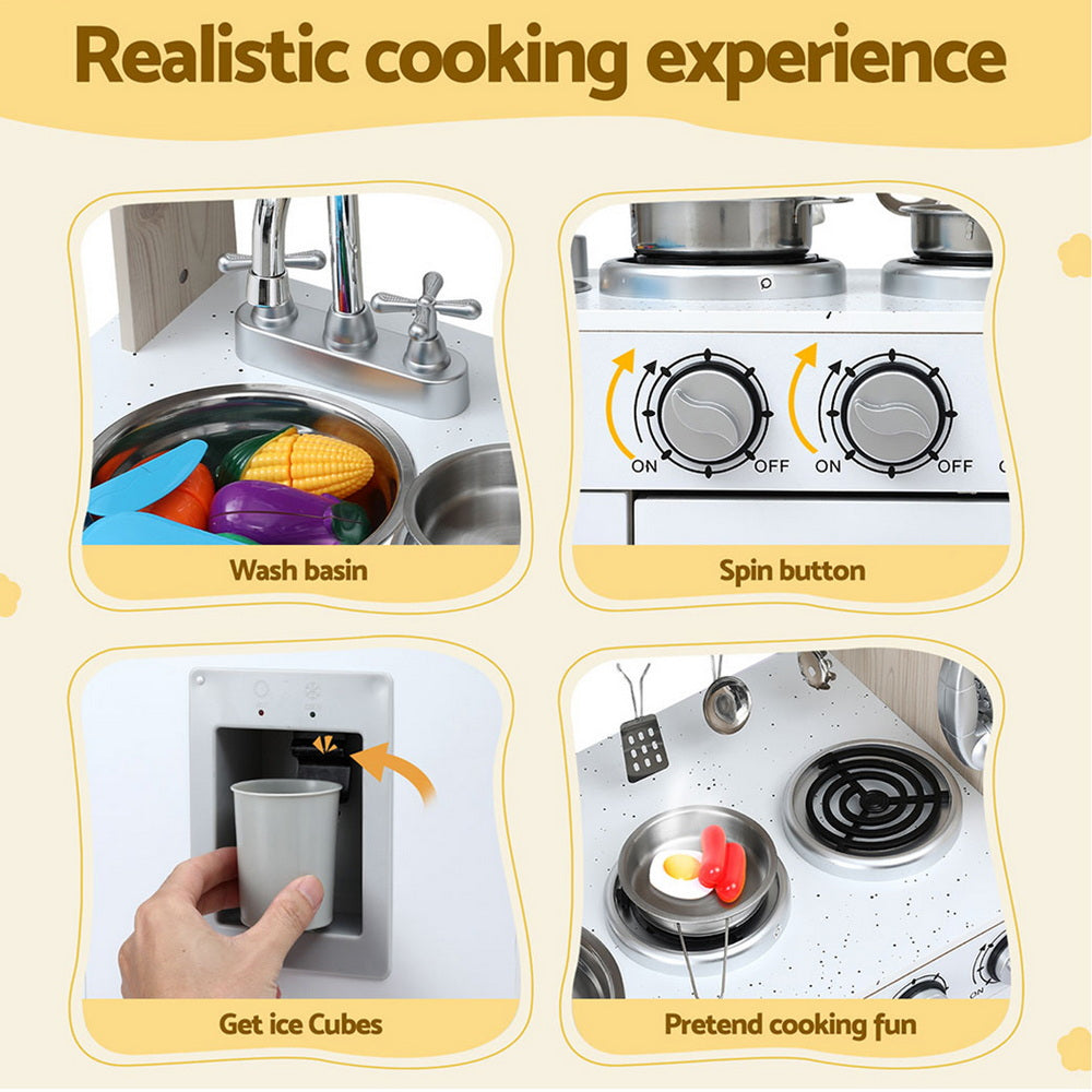 Keezi Kids Kitchen Play Set Wooden Pretend Toys Cooking Children Clock Beige