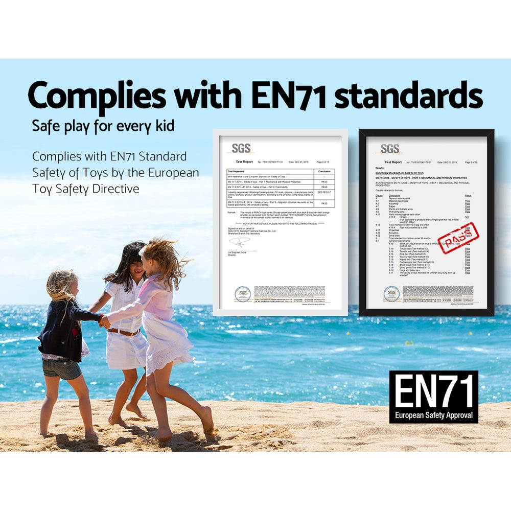 If your kids love getting creative, you'll love the Keezi Kids Activity Table. It may look like a simple table, but with a powder-coated steel frame and high-quality HDPE plastic exterior, the table is built for heavy-duty, long-lasting use. The table is coated with rust-resistant paint, features upgraded rounded corners for safety, and has a 100kg weight capacity to hold everything your child needs. Adjustable feet ensure the table is always the perfect height for your children to play, draw, read, write or craft. You can easily use the table indoors or outdoors – whatever the day requires. Best of all, the table is EN71 European Safety of Toys certified, so you can rest assured you made the right choice for your children. No matter the activity, the Keezi Kids Activity Table is ready for action.