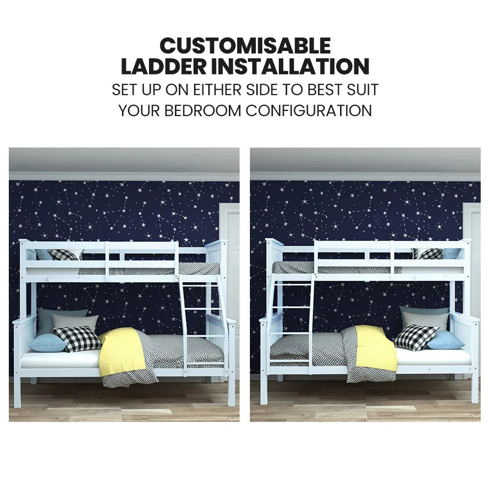 Kingston Slumber Single Over Double Wooden Bunk Bed Frame, Triple Solid Pine 2-in-1 Modular Design, Converts to 2 Beds, For Kids, White