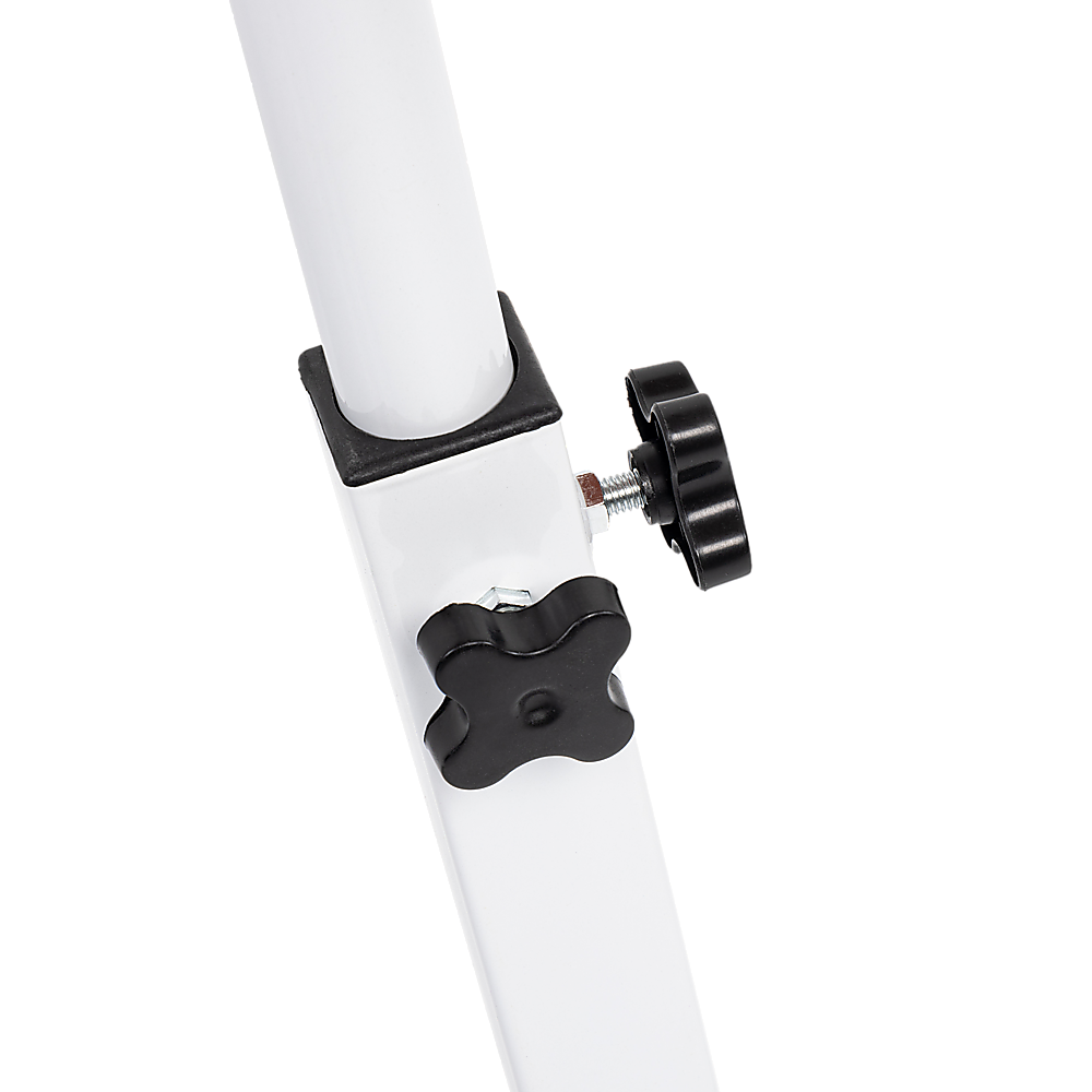 - Double knobs for height adjustment and tabletop rotation