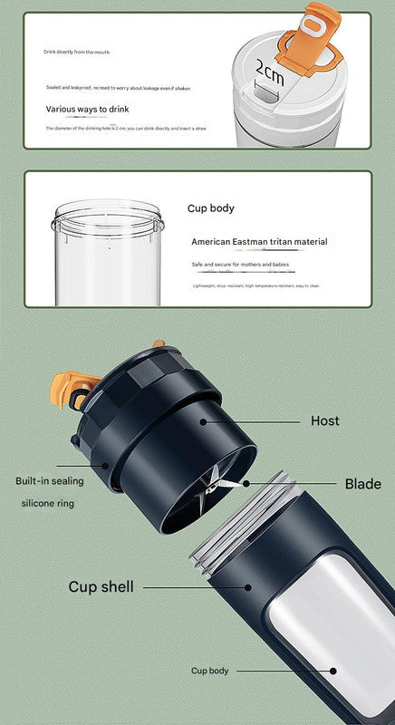 - Material: Cup Body - TRITAN, Outer Shell - ABS, Blade - 304 Stainless Steel
