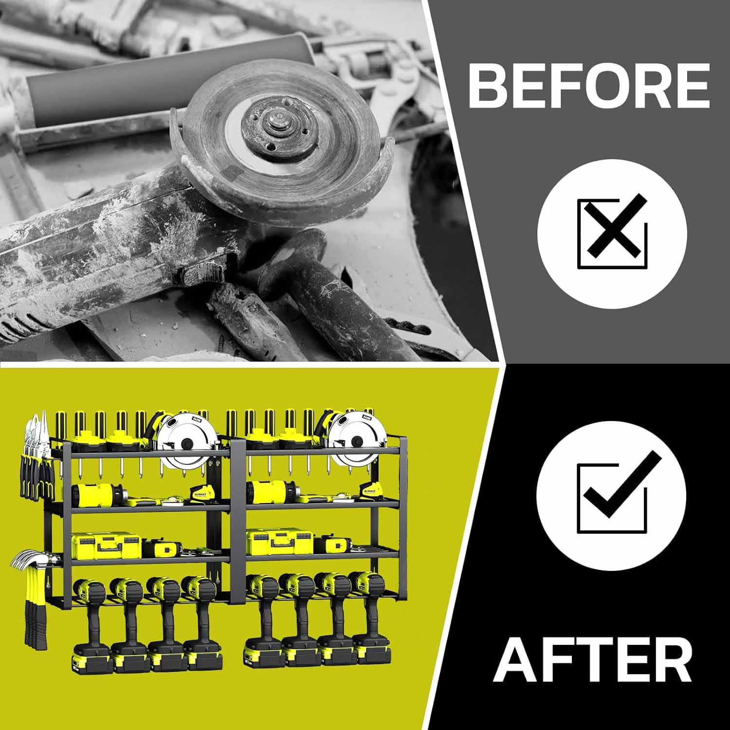 This 4-layer tool organizers and storage is made of thickened heavy-duty metal, is not easy to rust, stable and durable, strong weight-bearing capacity. Expansion bolts further providing assurance against shelf breakage or the organizer falling from the wall.