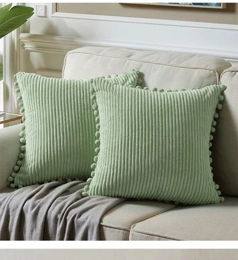 Enhance Your Home Decor with Plush Corduroy Pom Pom Cushion Covers (Set of 2)