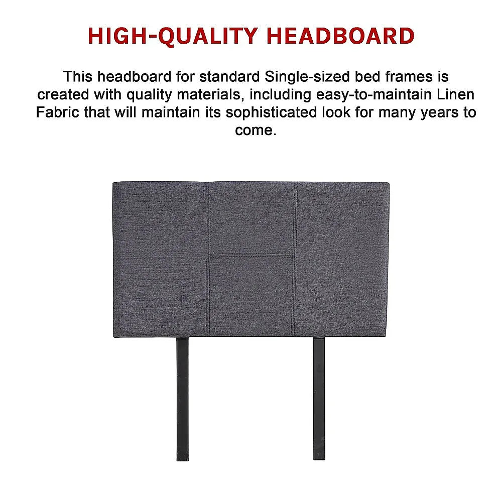 Linen Fabric Single Bed Headboard Bedhead - Grey