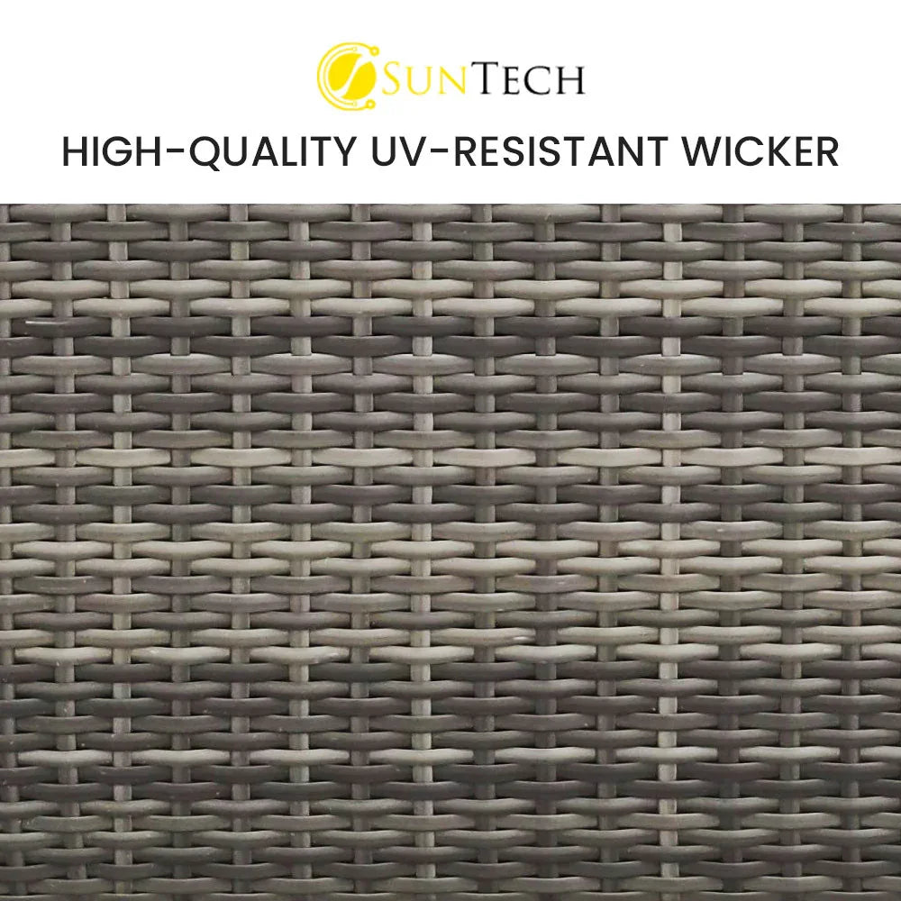 The set includes ultra-comfy 8cm thick water-resistant seat cushions, generous backrest cushioning and two throw cushions. The high-quality UV-resistant handwoven Suntech wicker in Marl Grey weave has a premium natural textured look. With a modular design comprising two sofas and two corner sofas, you can set it up in whatever configuration works best for you, making this London Rattan outdoor lounge setting a great addition to any outdoor space.