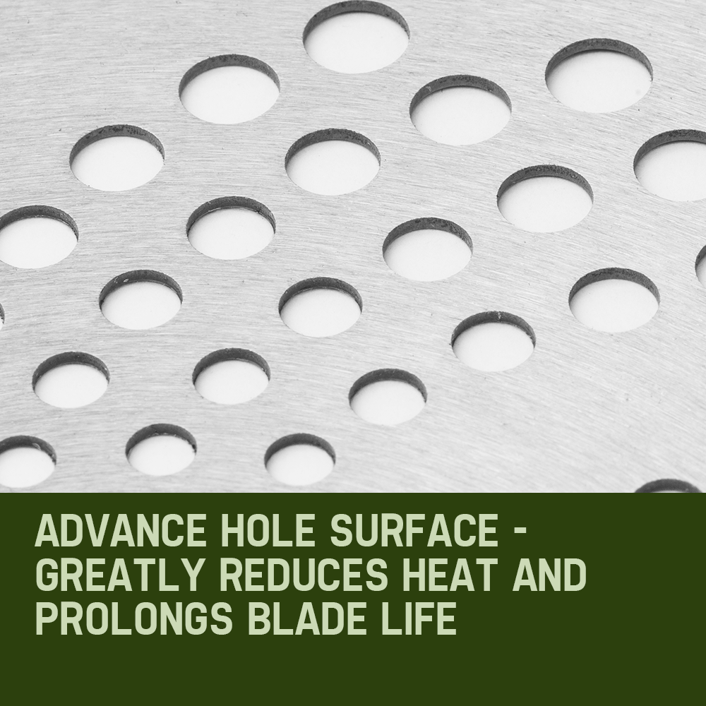 Composed of high grade light weight alloy, these true commercial blades feature aggregated carbide tipped teeth that do not require sharpening and last up to ten times longer than regular blades. Meanwhile, the advanced hole surface structure greatly reduces heat and prolongs blade life.