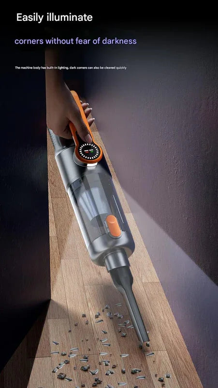 Experience versatile and powerful cleaning with our Multi-Function Cordless Handheld Vacuum Cleaner and Blower. This all-in-one device is engineered with a high-speed, high-performance cyclonic brushless motor that delivers strong suction to effectively clean various types of debris, including dust, crumbs, pet hair, sand, and cigarette butts. It also functions as a powerful blower and inflator, with included nozzles for inflating swimming rings, air mattresses, and inflatable pools. The high-definition digital display provides real-time monitoring of battery level and suction mode (Eco/Max). With its comprehensive set of attachments, including a flexible hose, crevice tools, and brush nozzles, it's perfect for cleaning car interiors, under beds, and other hard-to-reach areas. The one-key dust disposal design allows for easy and hygienic emptying of the 450ml dustbin.