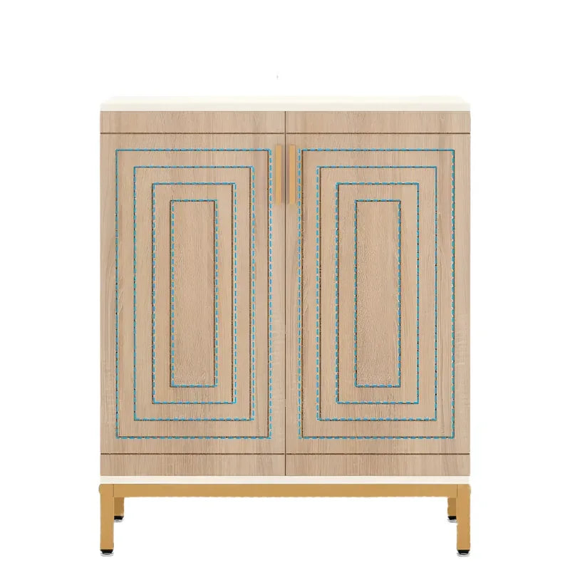 Measuring 31.5" W x 15" D x 30.3" H, this shoe rack saves valuable floor space while providing ample storage. The adjustable feet ensure the cabinet remains stable on any floor surface, preventing wobbling. The sleek golden door handle adds a warm touch and protects against scratches and injuries during use.