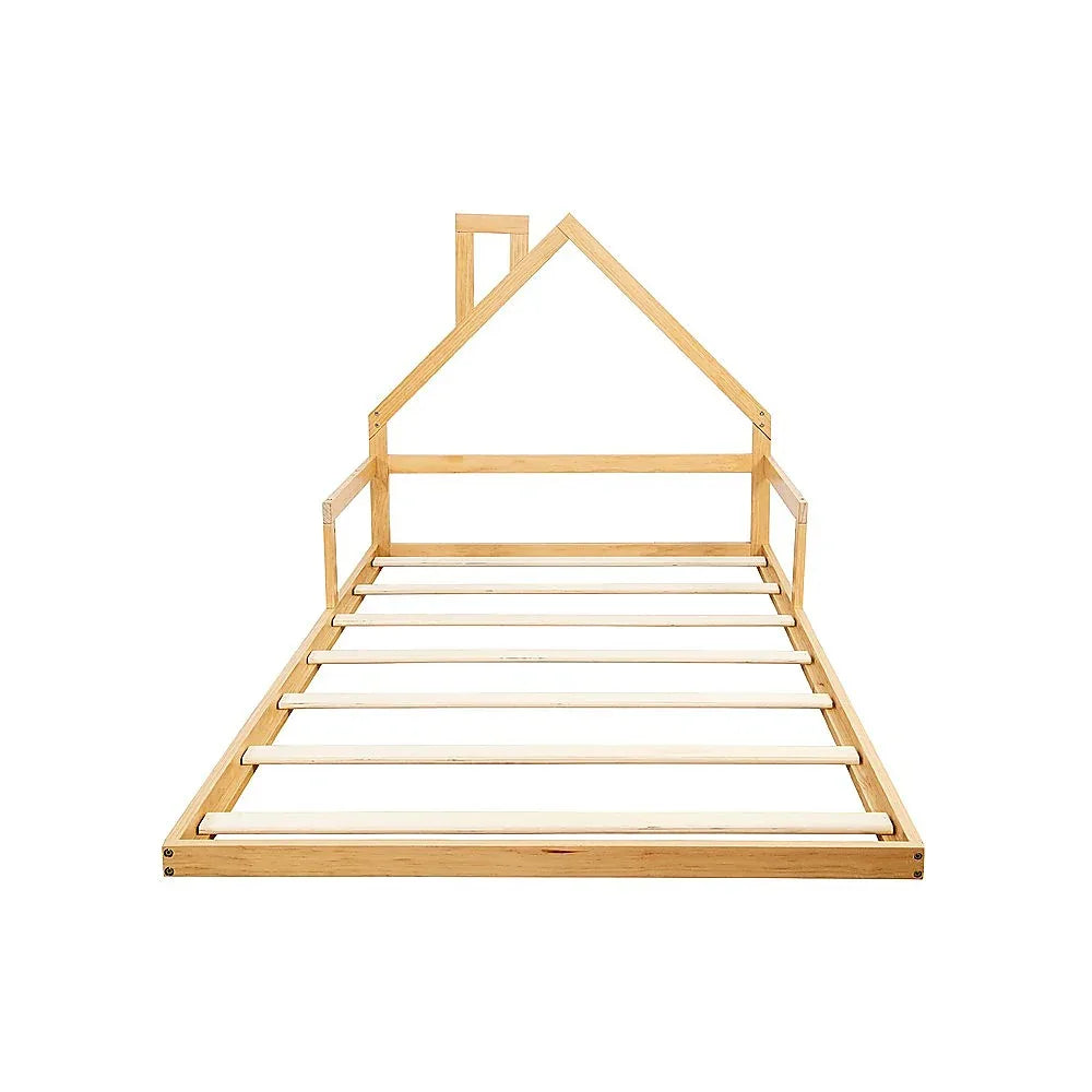 Pine Wood Floor Bed House Frame for Kids and Toddlers