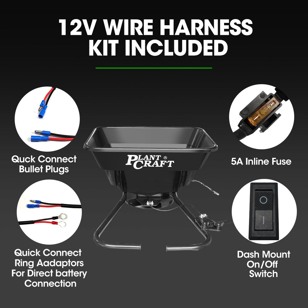 PLANTCRAFT Spreader 12V 36kg 30L Lawn Seed Fertiliser, for ATV, Ride on Mower, with Rain Cover