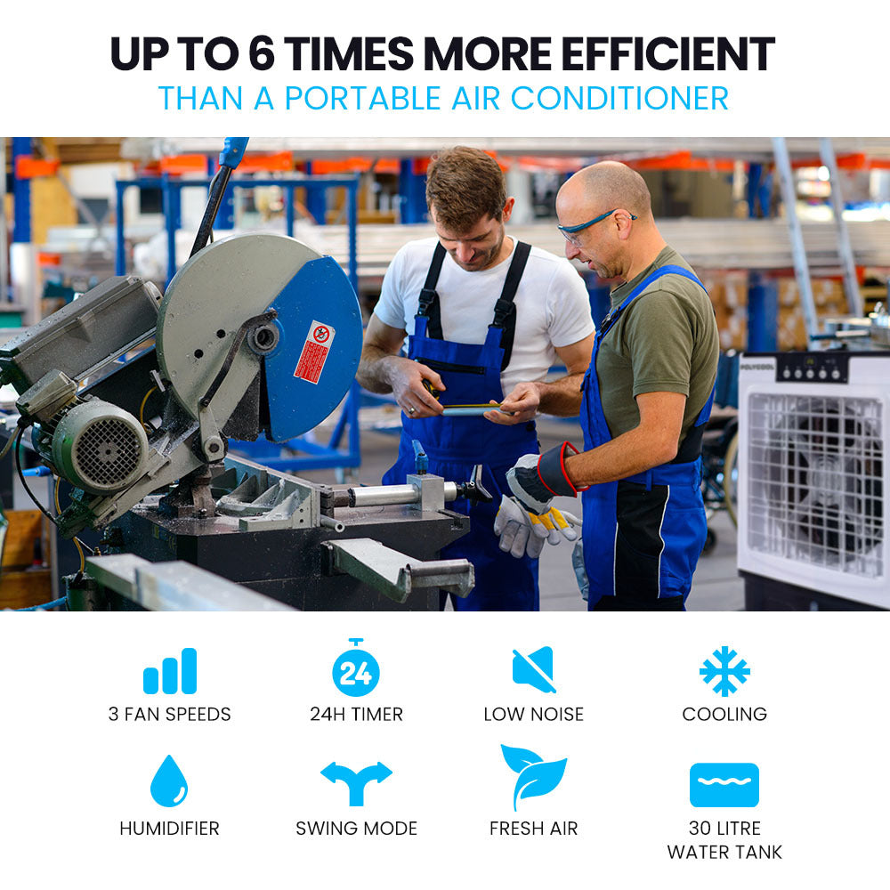 POLYCOOL 30L Evaporative Air Cooler Portable Industrial Fan, Purifier, Humidifier, Remote Control