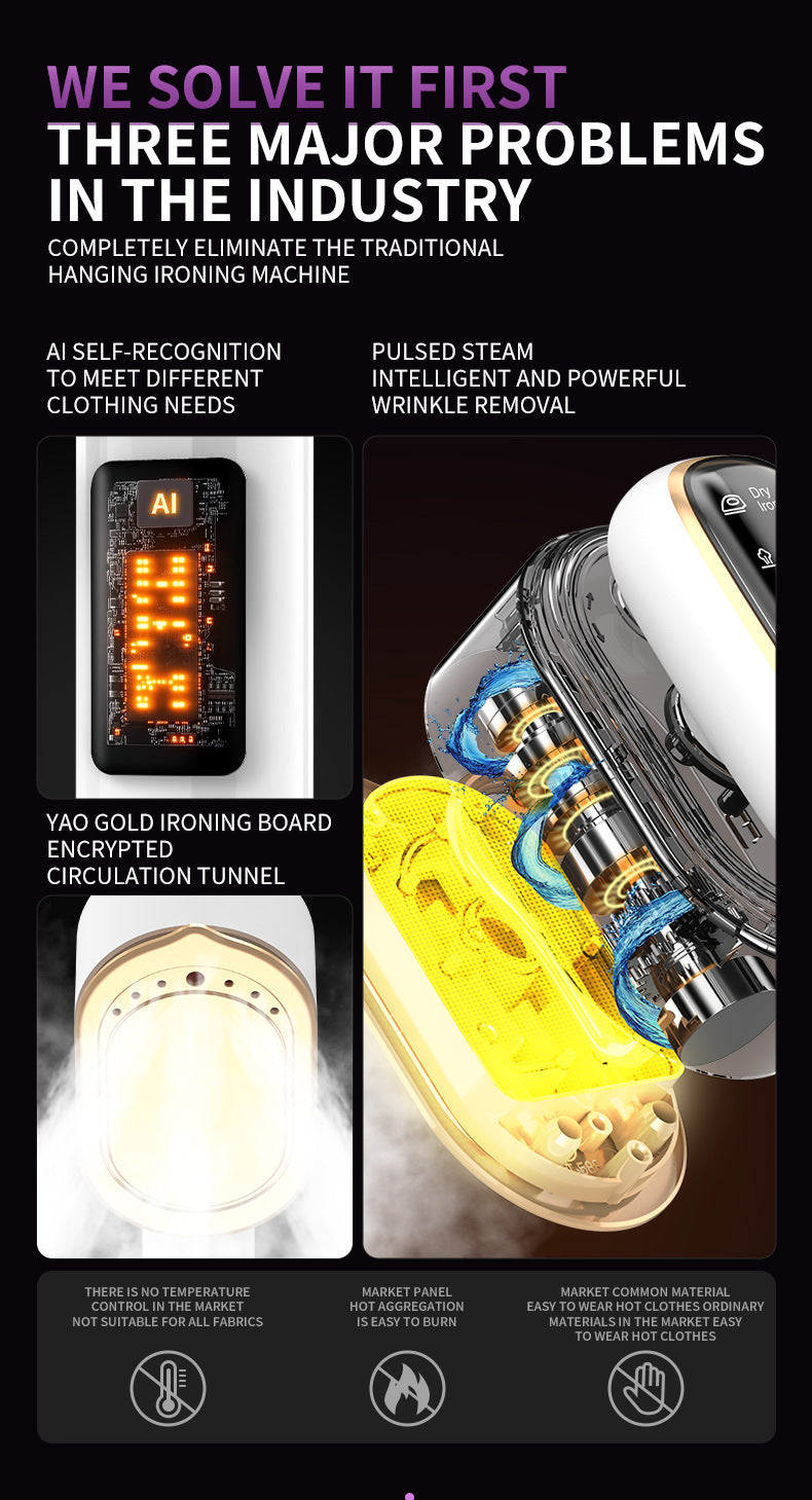 - Smart AI Temperature Control: Built-in intelligent chip automatically recognizes and adjusts to different fabric types, preventing damage.