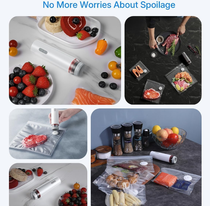 - Compatibility: Works with standard vacuum zipper bags with air valves