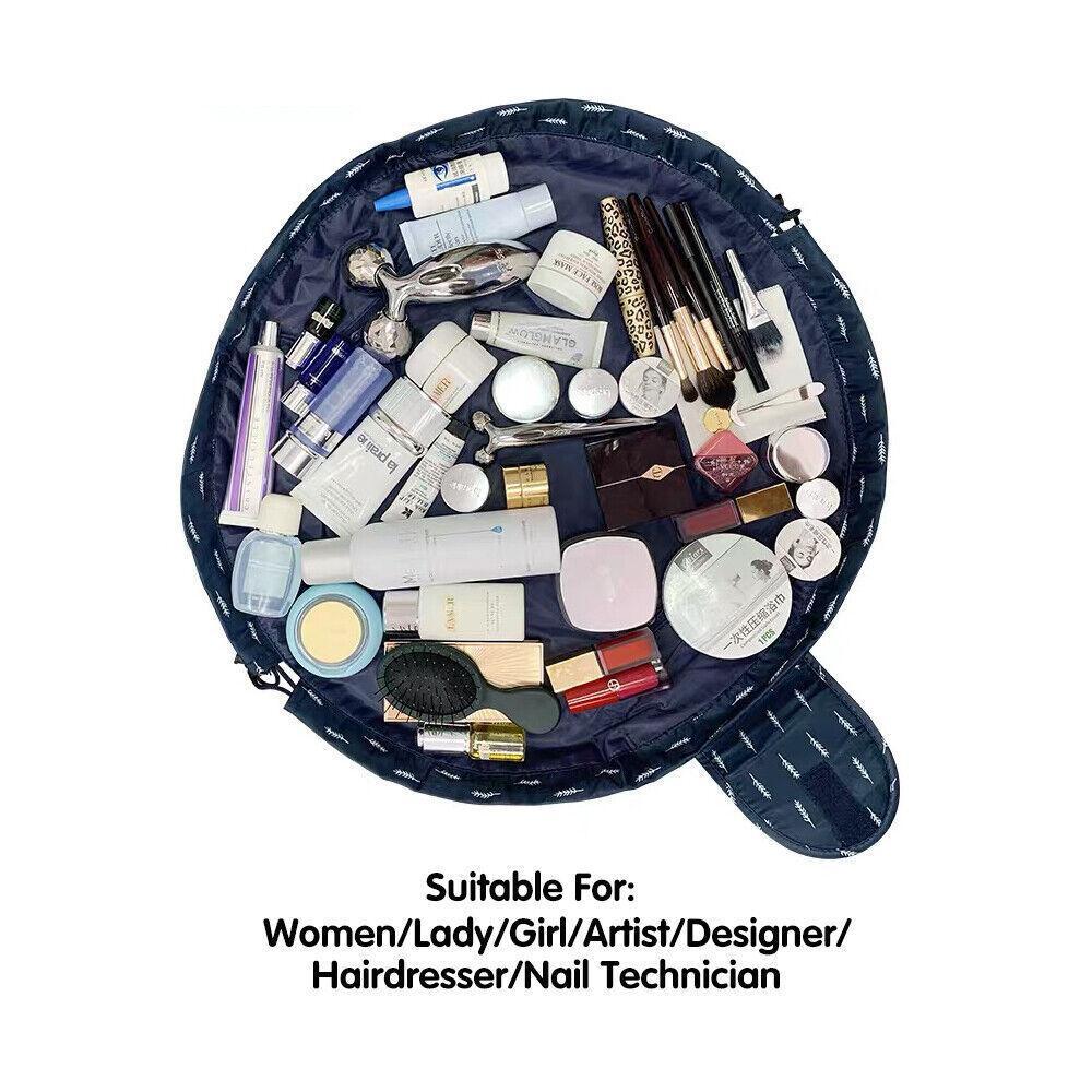 Portable Travel Makeup Bag Drawstring Cosmetic Pouch Lazy Storage Organiser Case - Orange Flower