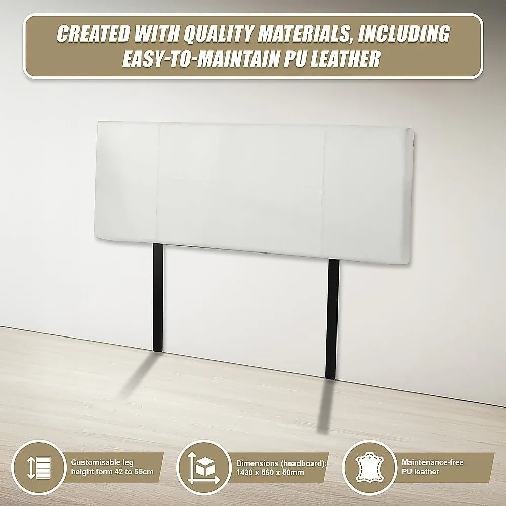 This headboard for standard Double-sized bed frames is created with quality materials, including easy-to-maintain PU leather that will maintain its sophisticated look for many years to come. This particular model comes with elegant stitching accents that provide just the right level of understated pop. A neutral white will blend seamlessly with a wide variety of bed frames and other bedroom furniture.