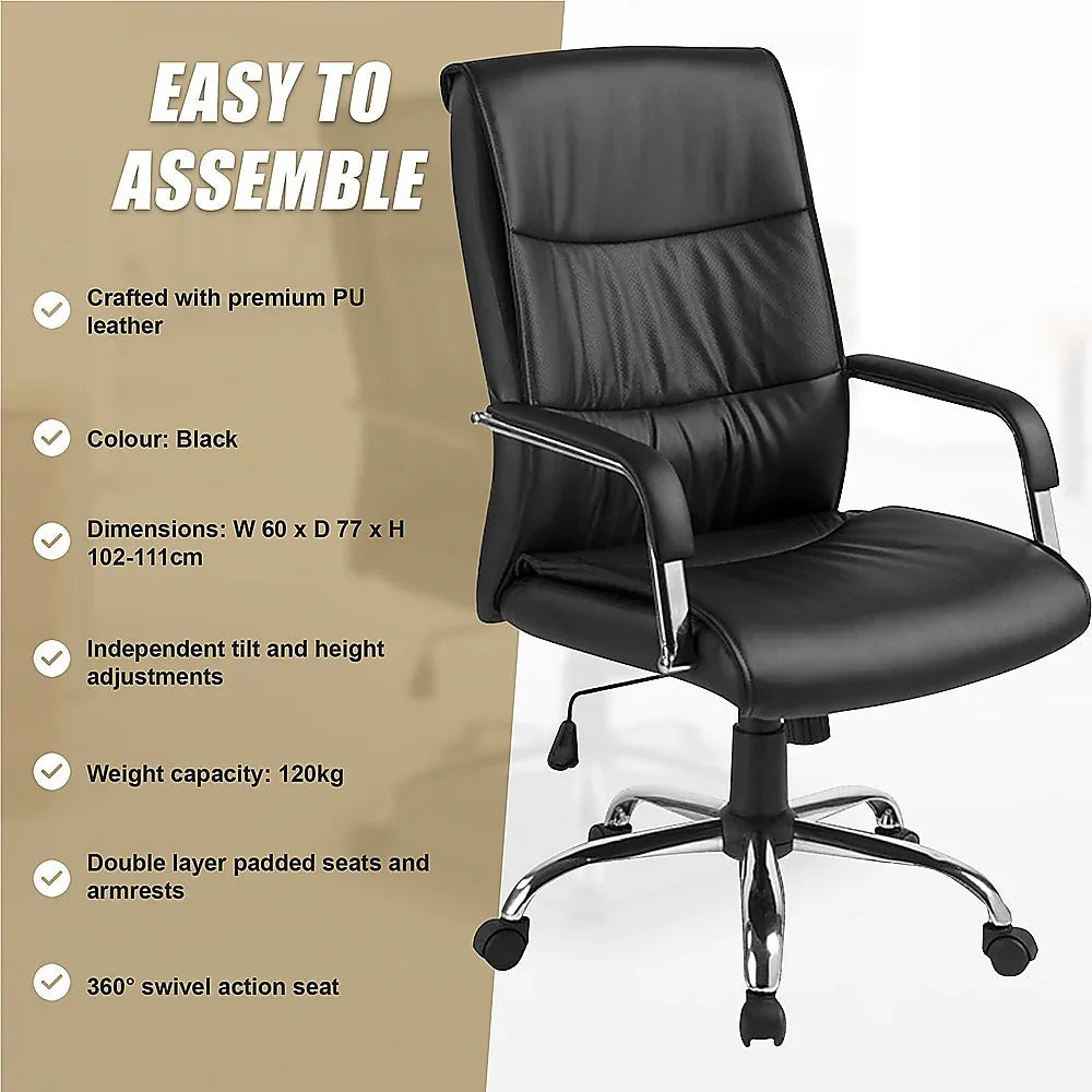 PU Leather Office Chair – Ergonomic Executive Swivel Desk Chair with Padded Seat in Black