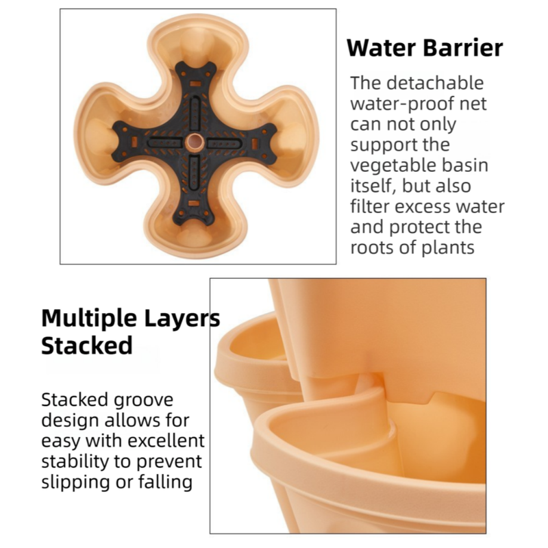 Maximise your growing space with this innovative 3-Tier Stackable Planter. Perfect for cultivating strawberries, herbs, flowers, and vegetables on balconies, patios, or indoors. Its unique four-petal design allows for high-density planting while keeping your area tidy and manageable.