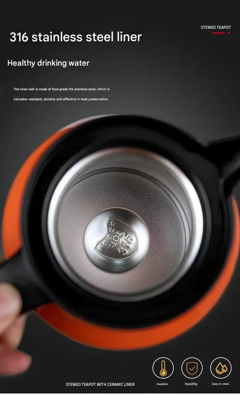 Elevate your tea and coffee experience with this 316 Stainless Steel Stewed Teapot. Designed for both home and office use, this teapot features a high-quality 316 stainless steel interior with a ceramic lining, ensuring excellent heat retention and durability. The integrated infuser allows for easy tea brewing with a tea-water separation design, preventing over-steeping and delivering the perfect flavor. With a capacity of 1000ml, it is ideal for serving multiple cups, making it perfect for family gatherings or office meetings.