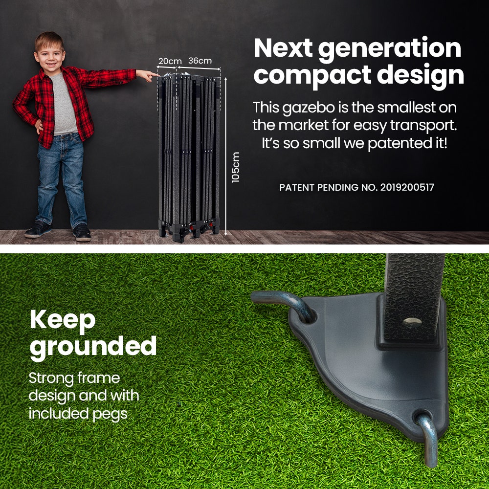 The Red Track 3x3m Gazebo (with 3 walls included) stands out with the smallest folded size on the market—just 93cm long! This ultra-compact 13kg design makes it incredibly easy for one person to carry, transport, and store, offering unmatched convenience compared to bulkier alternatives. Whether you're short on space or always on the move, this gazebo’s design ensures portability without compromise.
