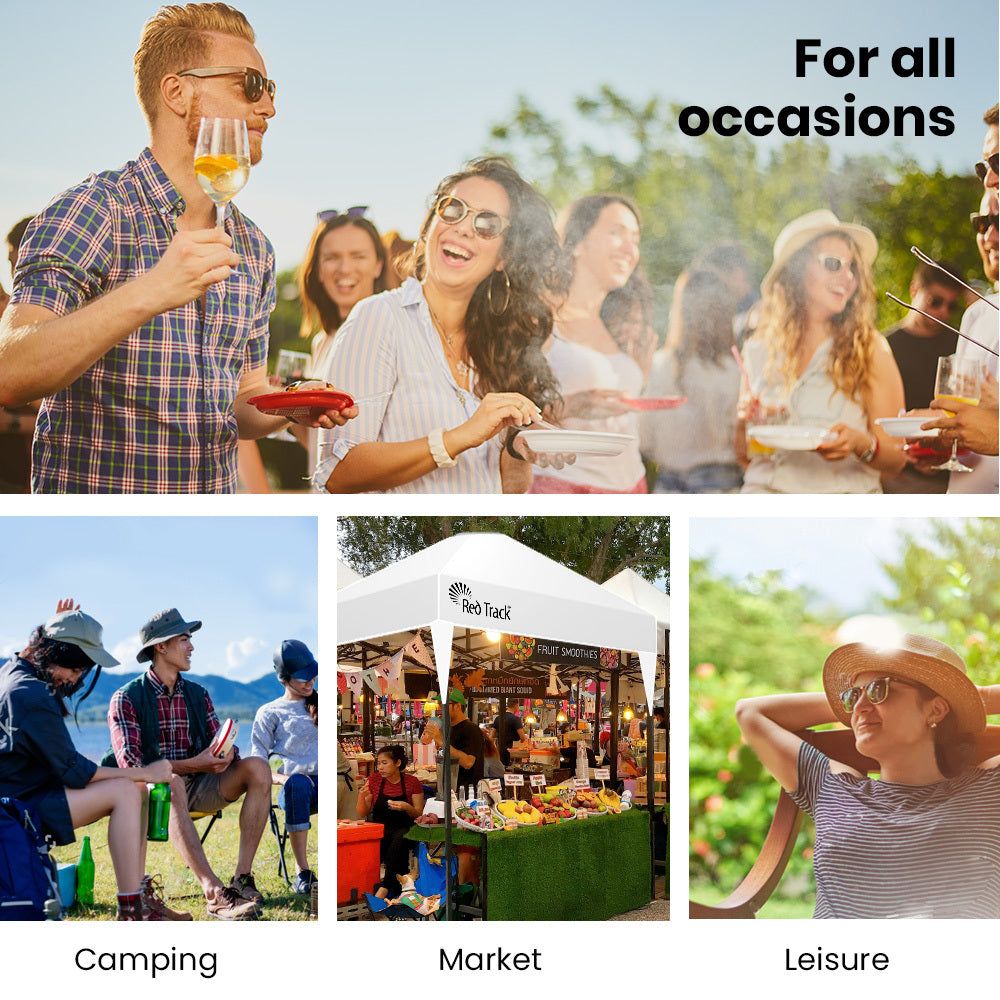 RED TRACK 3x3m Ultra Compact Folding Gazebo, Walls, Carry bag, Portable Outdoor Popup Marquee for Camping Beach, White