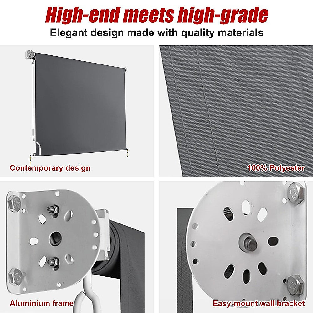 Retractable Straight Drop Roll Down Awning Garden Patio Screen 3.0X2.5M