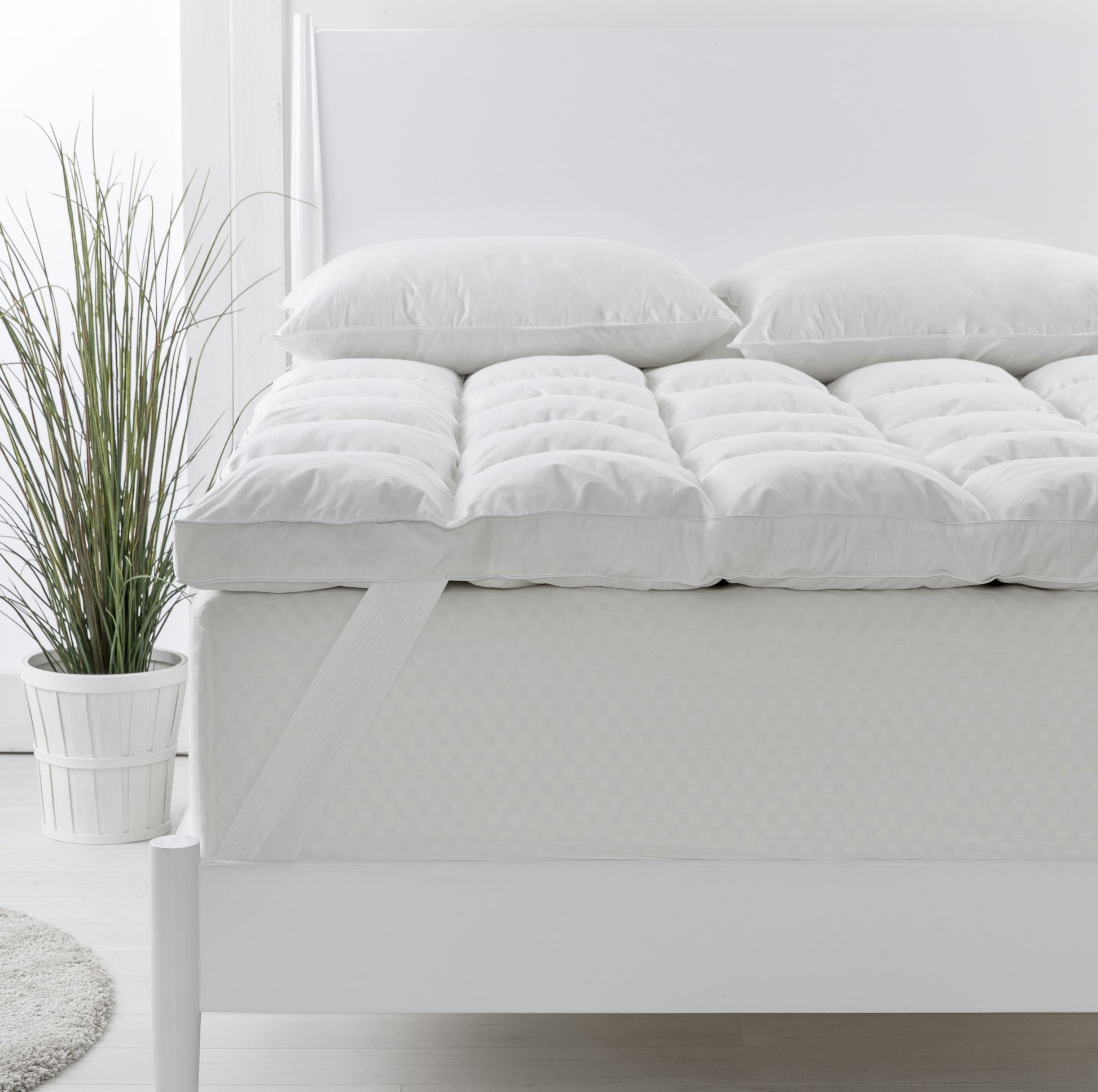 The topper is a decadent 1800GSM, with a premium fill of 95% white duck feather and 5% white duck down. The fill is encased in a 233-thread count 100% cotton cover that is both soft to the touch and ensures that the fill does not poke through.