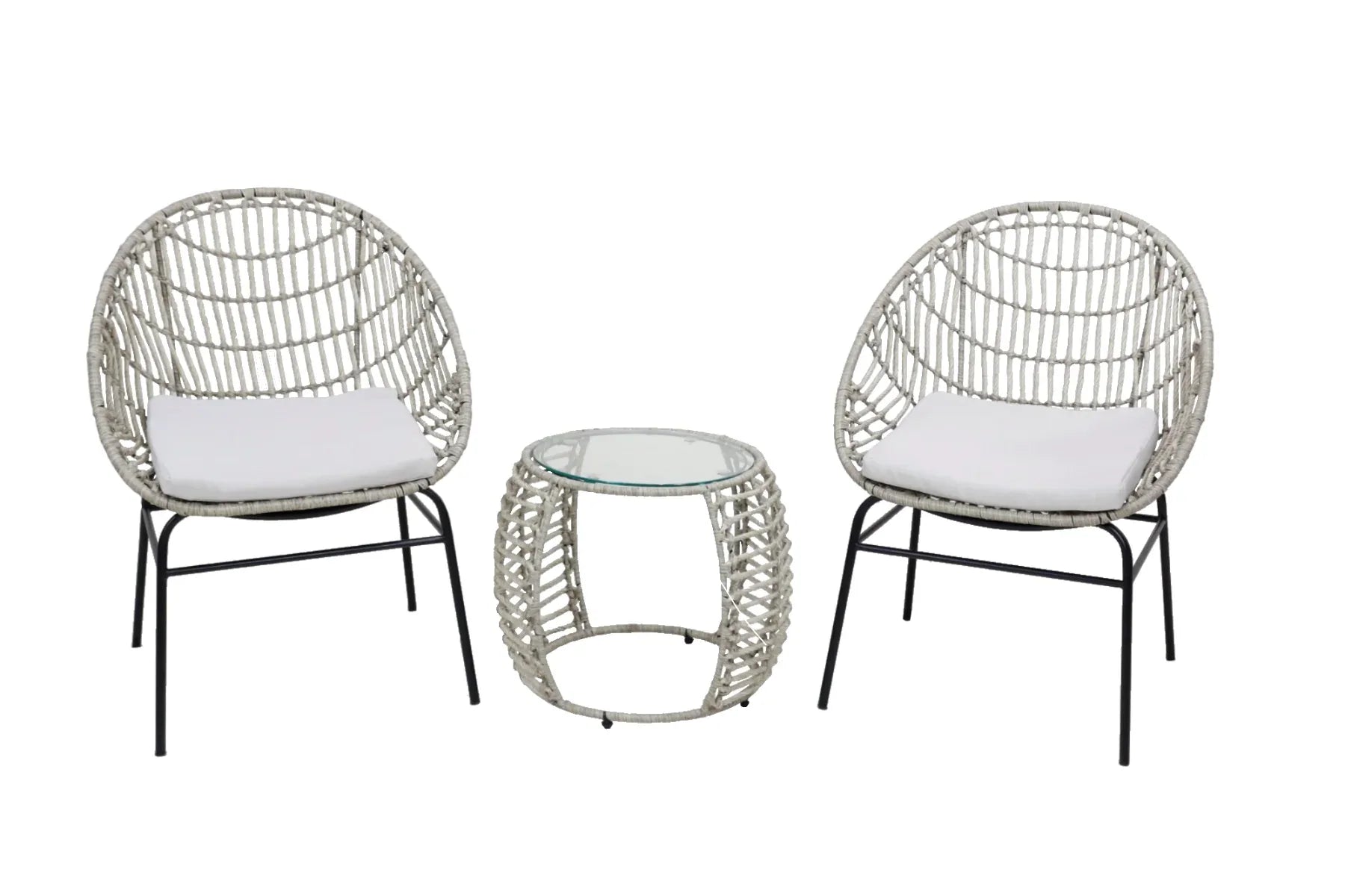 Upgrade your patio, garden, or balcony with this elegant 3-piece PE wicker furniture set. Designed for comfort and style, it includes two chairs and a glass-top table, perfect for relaxing or entertaining.