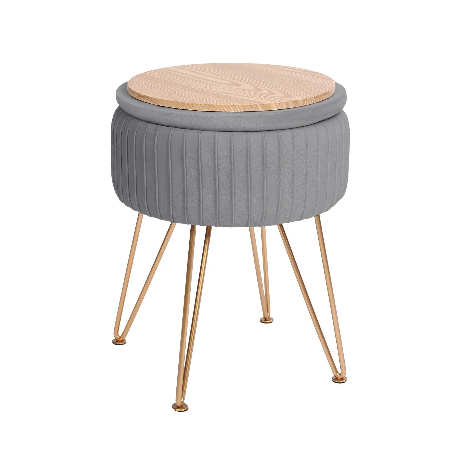 Side Table Storage Ottoman - Velvet Padded Stool Vanity Footstool REMY GREY