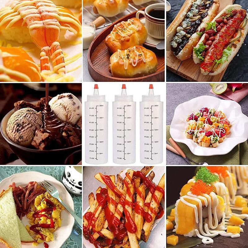 Squeeze Condiment Dispenser Bottles 250ml 500ml Sauce Craft Use Set of 6 - 250ML