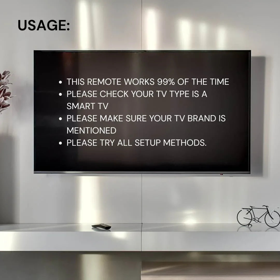 Please Note: This remote works 99% of the time so please check your TV type as Smart Tv and the brand and go ahead. Please try all setup methods.