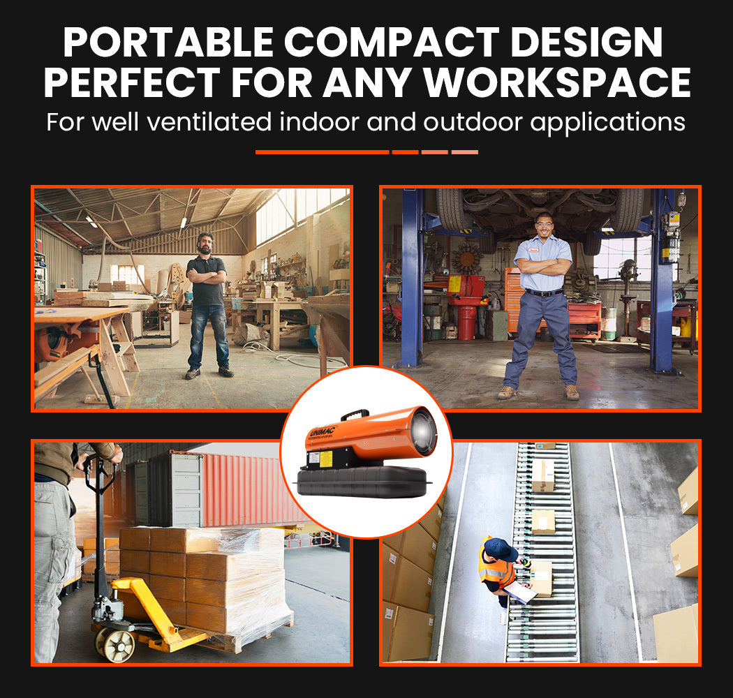 Warm up your workshop in no time. Order a UNIMAC UMDHT-58 MkII 20KW Diesel Industrial Space Heater today!