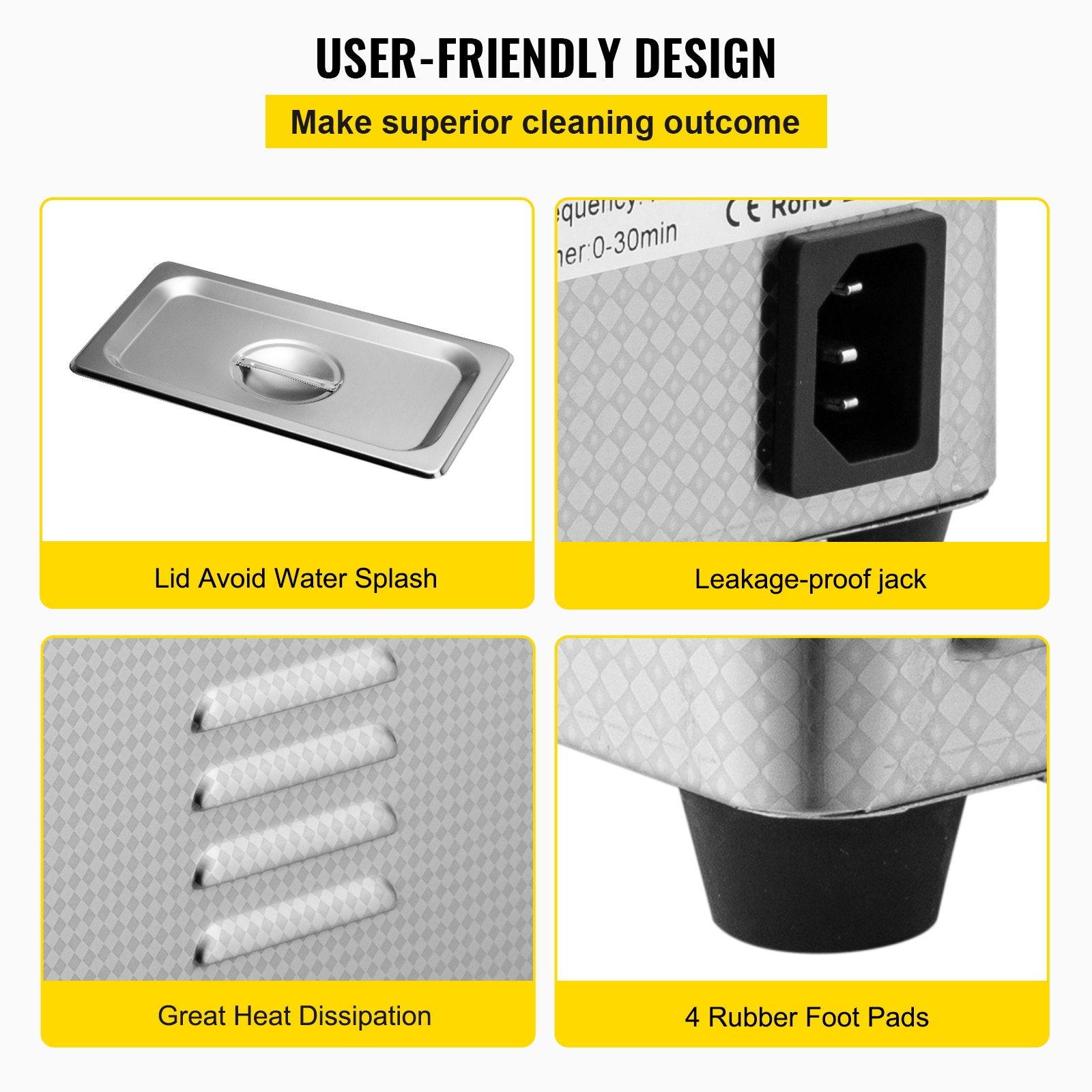 VEVOR 0.8L Professional Ultrasonic Cleaner 304 Stainless Steel Digital Lab Ultrasonic Cleaner with Timer for Jewelry Watch Glasses Circuit Board Dentures Small Parts Dental Instrument (0.8L)
