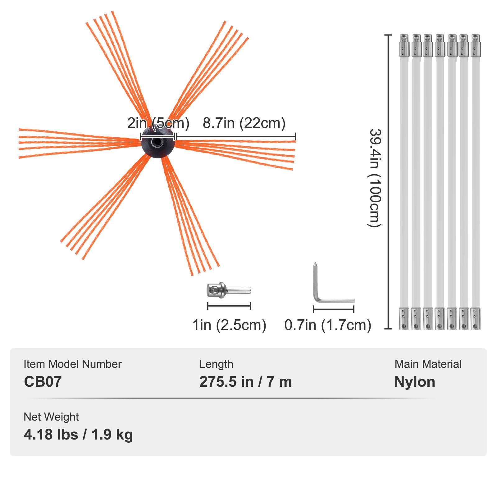 The nylon rod is constructed from stable molecular structure, elastic, and break-resistant reinforced fibers. It can bend at angles greater than 90 degrees, providing the flexibility needed for easy use.