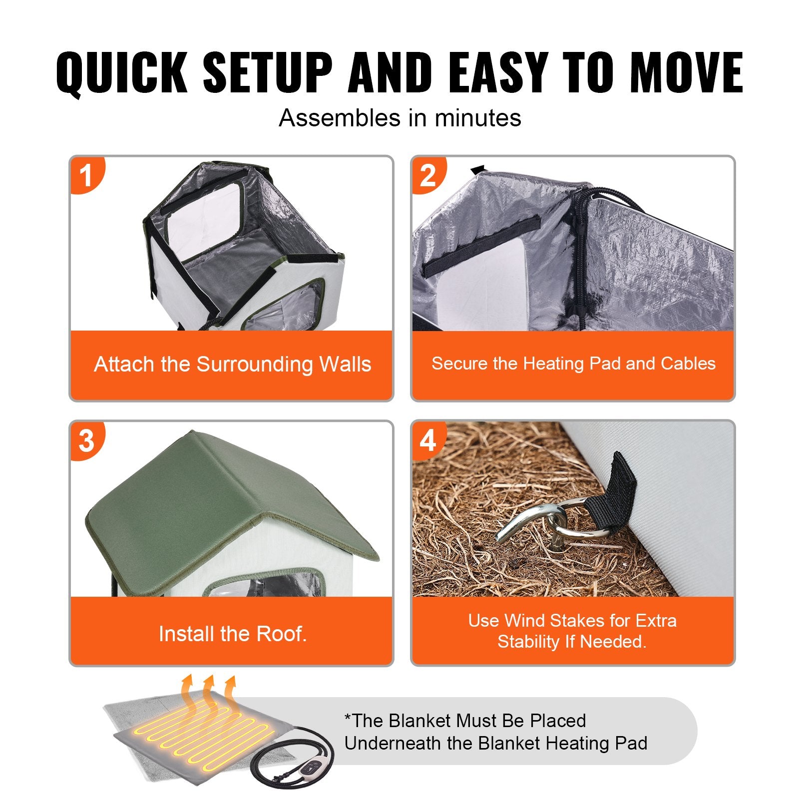 VEVOR Elevated Heated Cat House, Outdoor Kitty Shelter with Timer, 600D Oxford Cloth Foldable Cat Shelter with Heated Pad for Winter to Stay Warm and Cozy, Green (Small)