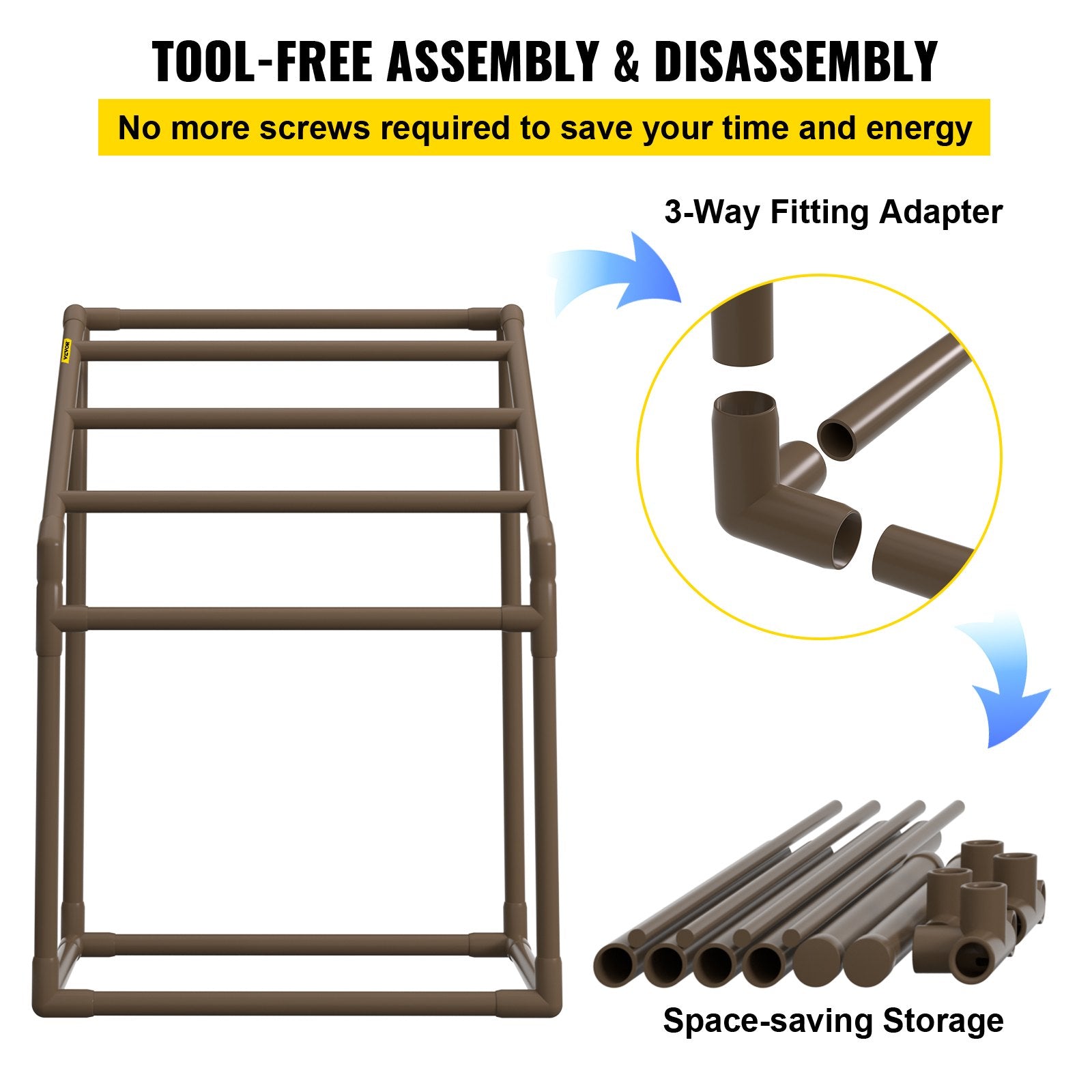 VEVOR Pool Towel Rack, 5 Bar, Brown, Freestanding Outdoor PVC Trapedozal Poolside Storage Organizer, Include 8 Towel Clips, Mesh Bag, Hook, Also Stores Floats and Paddles, for Beach, Swimming Pool