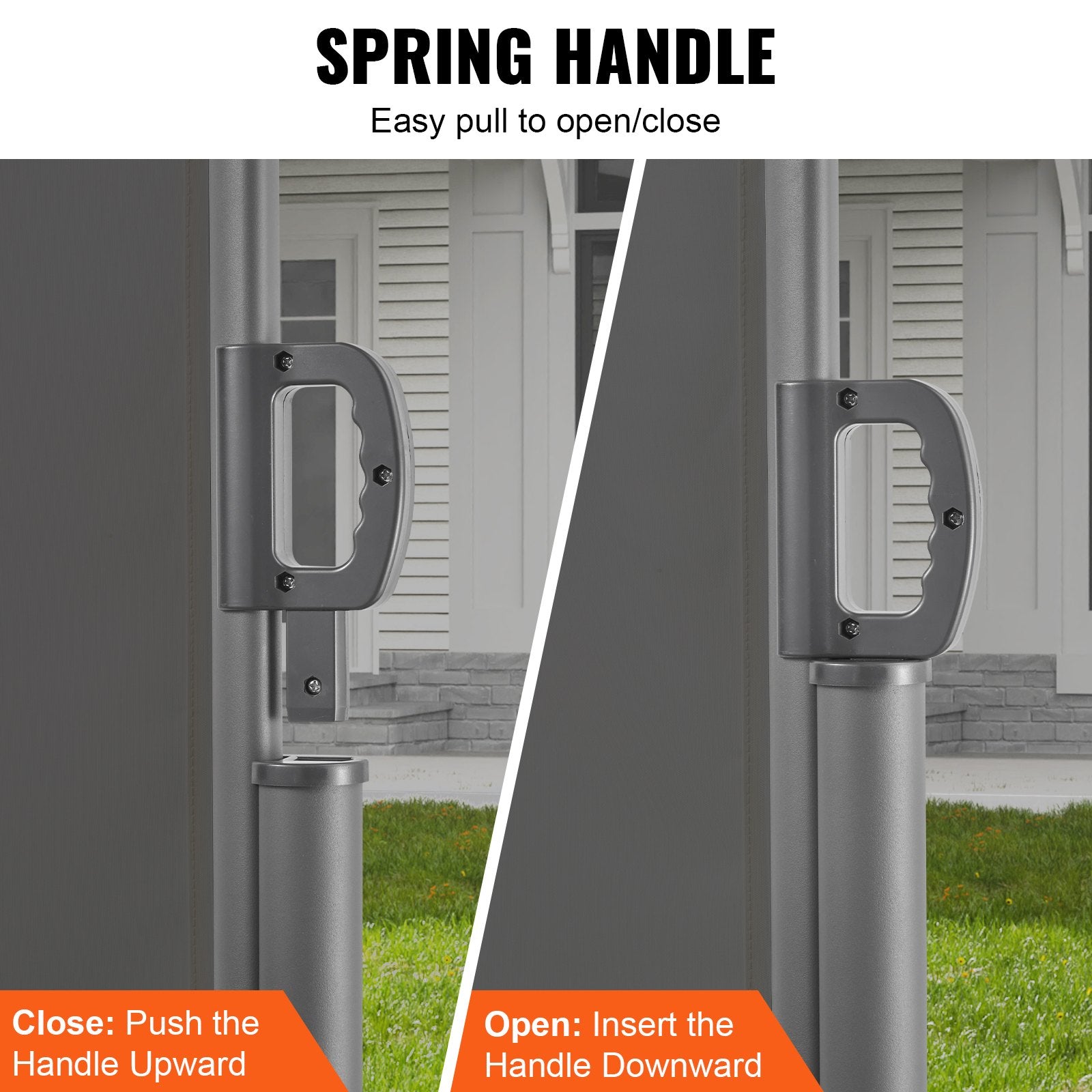 The retractable handle features a spring for smooth operation. Simply pull or push to adjust the side awning's extension and retraction. The upgraded spring handle is designed to prevent pinching, ensuring a better user experience.