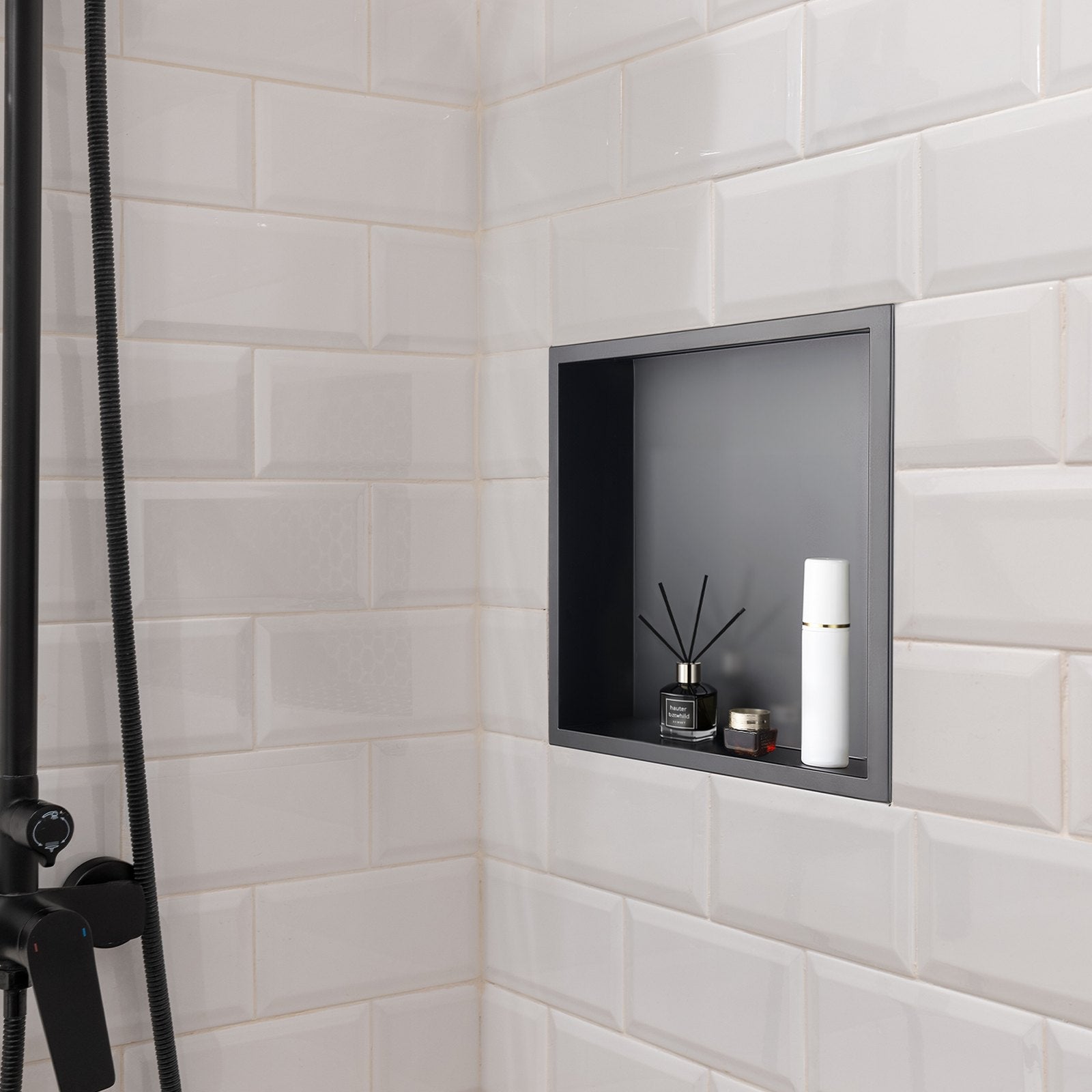 Made of premium 304 stainless steel, this tile niche is rust-resistant, fade-resistant, and durable. It’s ideal for humid bathroom. It maintains its appearance and performance for a long time without warping or damage.