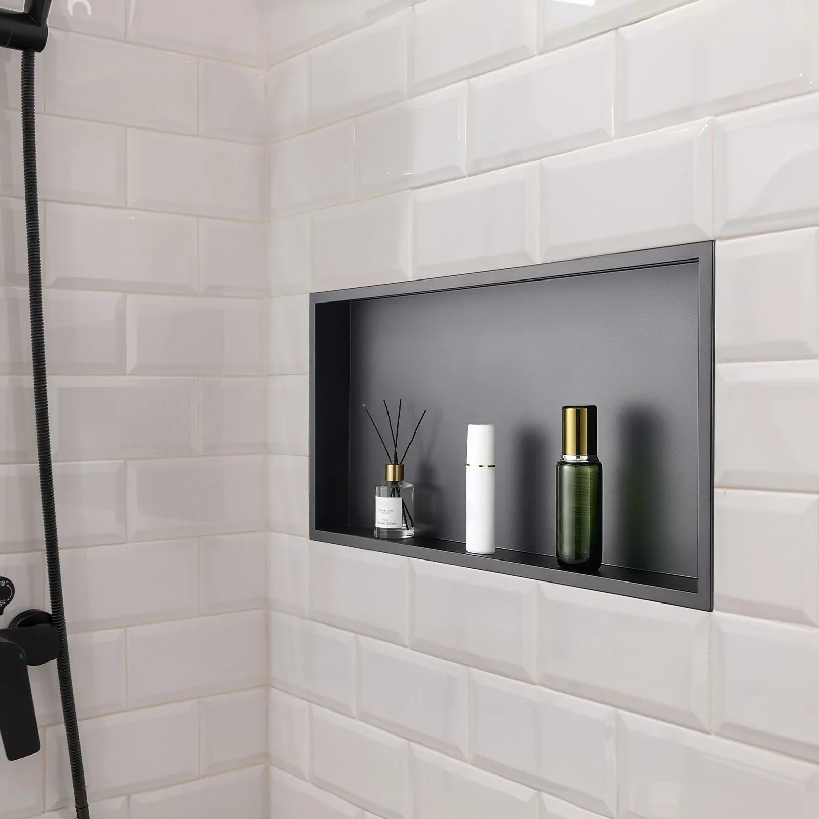 Made of premium 304 stainless steel, this tile niche is rust-resistant, fade-resistant, and durable. It’s ideal for humid bathroom. It maintains its appearance and performance for a long time without warping or damage.