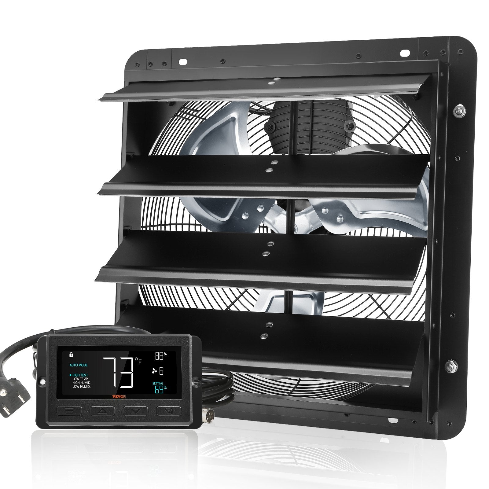 VEVOR Shutter Exhaust Fan, 406 mm /16inch with Temperature Humidity Controller, EC-motor, 1747 CFM, Variable Speed Adjustable Wall Mount Attic Fan, Ventilation and Cooling for Greenhouses, Garages, Sheds