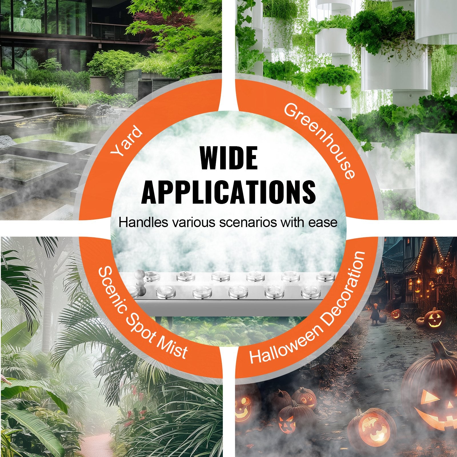 VEVOR Ultrasonic Mist Maker 12 Head, 9000mL/H Ultrasonic Fogger, Mist Maker with 300W IP67 Waterproof Power Supply, Buoy, Replacement Discs, for Pond, Garden, Rockery, Greenhouse, Halloween Decoration