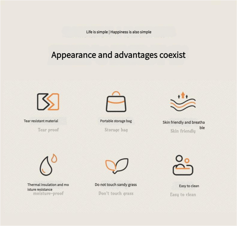 - Waterproof PEVA backing to keep you dry on damp surfaces