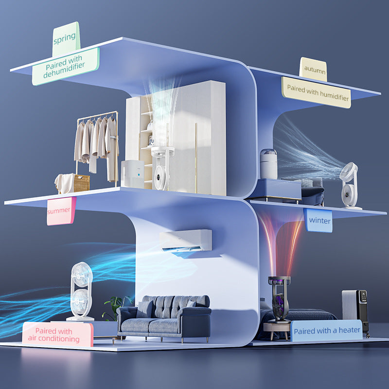 - Double Head Design: Two adjustable fan heads for multi-directional airflow.