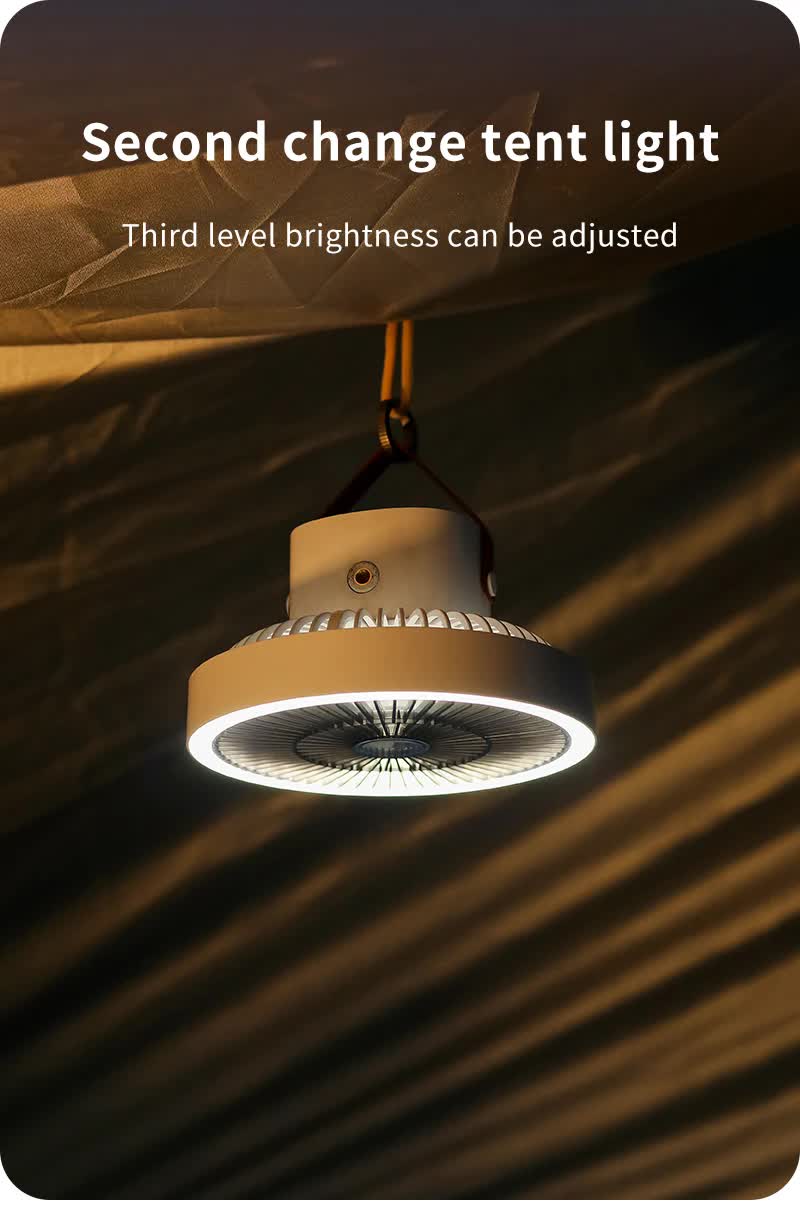 White Portable Outdoor Tripod Fan – USB Rechargeable Camping Fan with Remote Control, Folding & Adjustable for Outdoor Activities and Travel